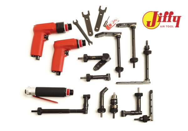 JIFFY Air Tool pioneered the “Modular Tool” platform for drill motors and attachments (JMD). Utilizing this platform, Jiffy motors accept a wide variety of drill attachments to meet customers’ limited access requirements.